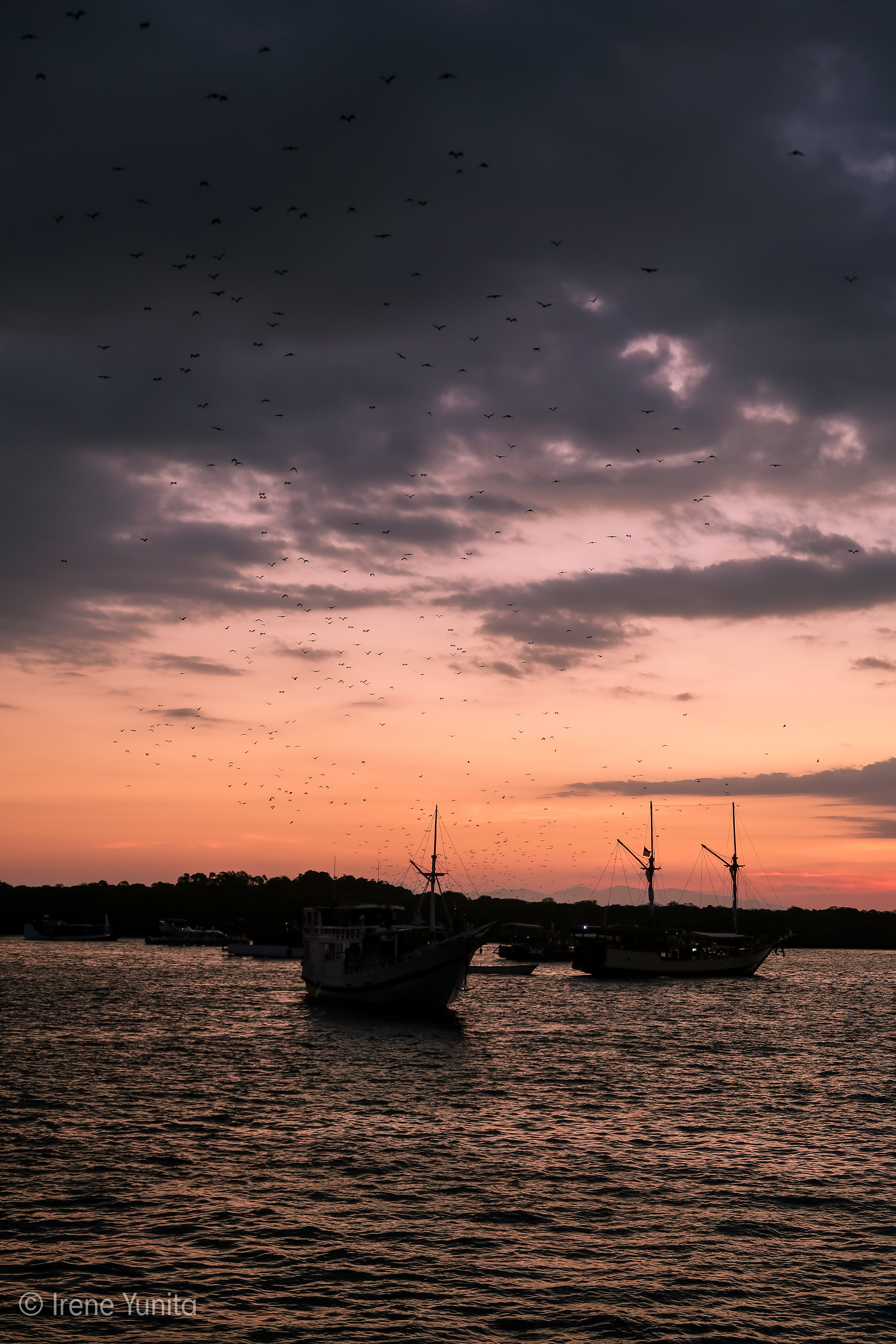 Setelah spot kedua selesai, kami mulai melaju kembali ke pulau kelelawar, untuk menikmati sunset dan melihat banyaknya kelelawar yang keluar dari pulau itu, warna langit yang merah membuat saya jatuh cinta dengan spot ini, cantik sekali ya Tuhan.
