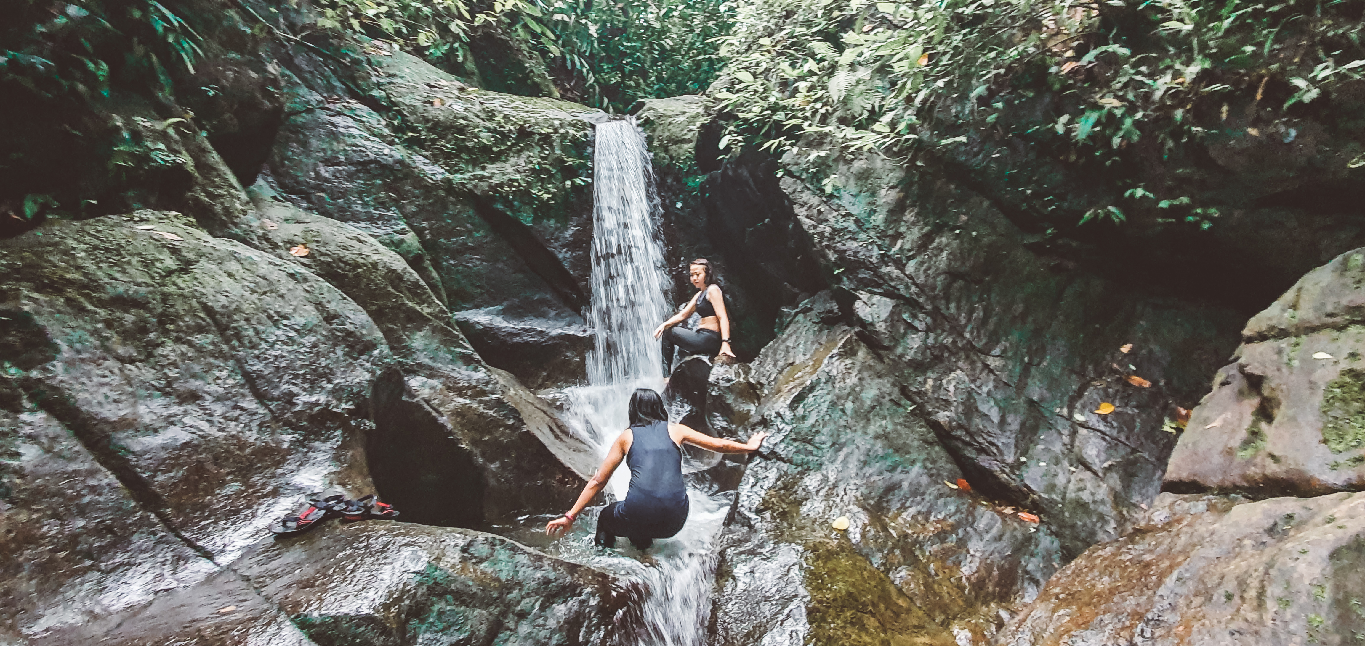 Air terjunnya sepi dan rasanya seperti shower pribadi, dan selanjutnya kita ke Menuju Sumber Air Panas, kurang lebih 15 menit dari Air Terjun ini, menyebrangi sungai dengan menggunakan ban jika kalian tidak bisa beranang, dan jika bisa berenang juga berhati-hati karena arusnya sedikit deras. Beberapa menit kita menepi untuk menghangatkan badan, dan menyebrang kembali menepi sejenak sambil menikmati suara arus sungai yang indah ini.