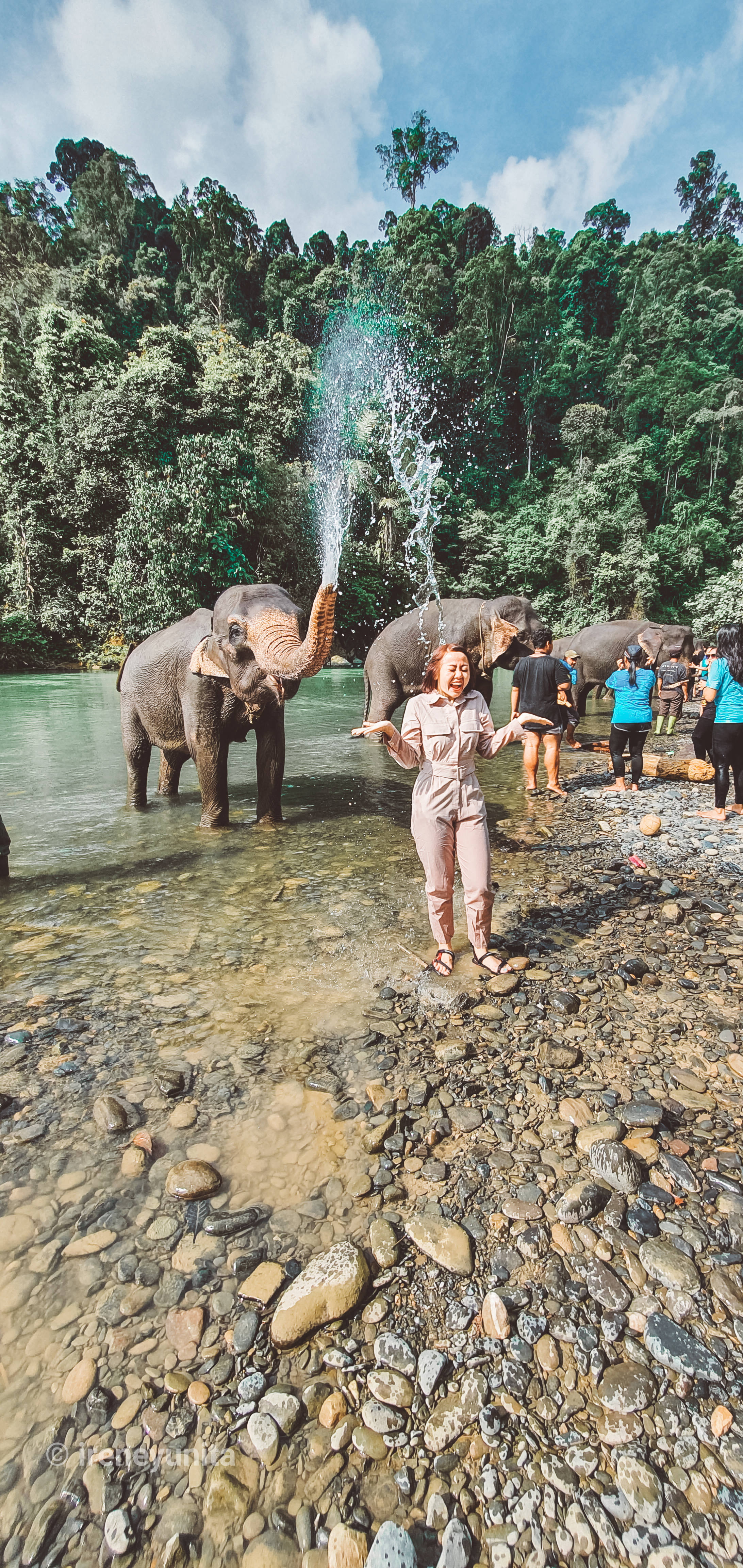 Gajah-gajah di Tangkahan semua sudah terlatih, yang kita lakukan adalah memandikan gajah,dan memberinya makan buah-buahan. Perkenalkan ini adalah Agustine, sangat manja selagi dan dia nurut dengan Pak Johny a.k.a Mahoutnya Agustine.